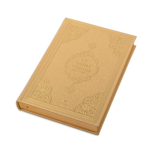 BABY SHOWER CHOCOLATE French Translated Quran Book Velvet Covered Yaseen Sura Bag-Size Book & Crystal Prayer Beads Set with Perfect Islamic Ramadan Eid Gifts (Gold)