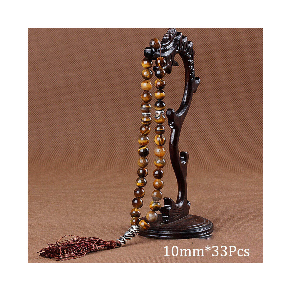 Islamic Muslim Tasbih Prayer Beads 10mm Natural Stone Knotted Rosary Tasbih 33 Beads with Metal Tassel