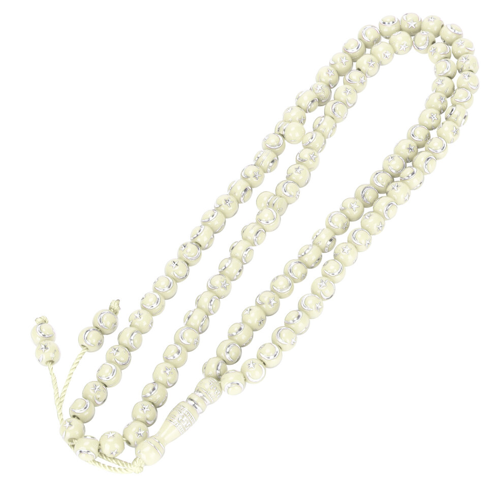 Islamic Prayer Rosary 99 Beads Resin Moon & Star Design Beige