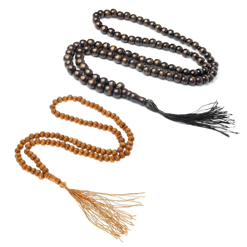 R2LE Wood Tasbih Prayer Beads 99 Muslim Prayer Beads Islamic Handheld Prayer Beads Muslim Rosary Beads Bracelet with Tassel