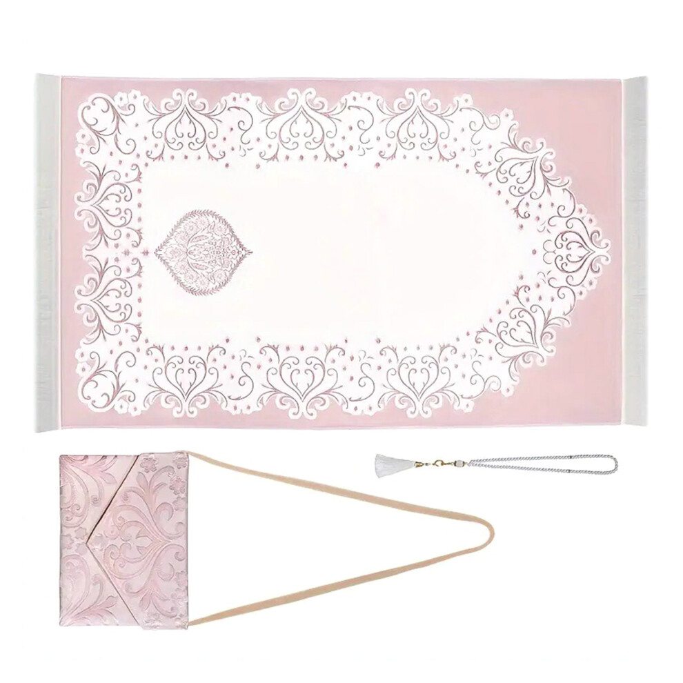 Muslims Prayer Rug with Islamic Prayer Beads and Bag-Pink