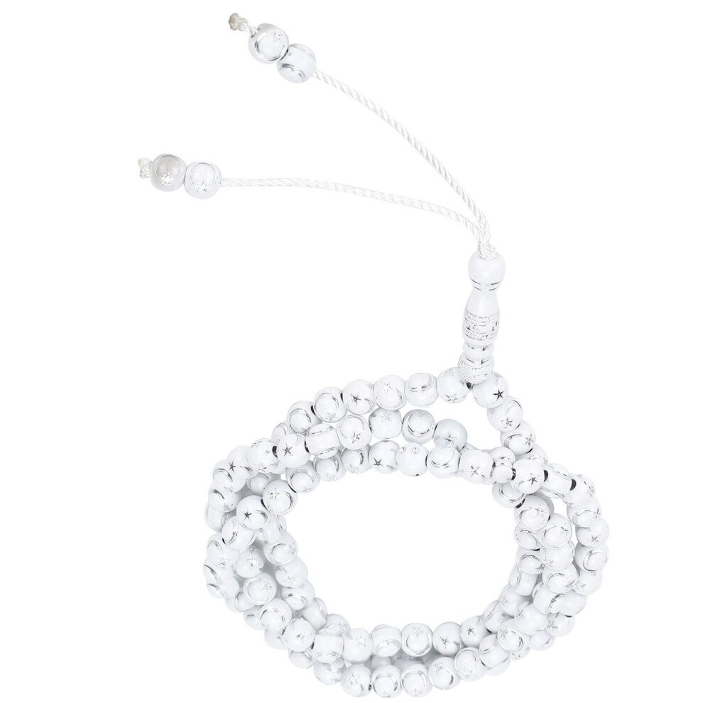 Islamic 99 Grains Prayer Beads with Mihrab Separations White Resin