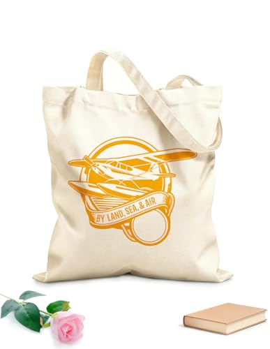 XIARON High-definition printed tote bags Travel Airplane Flight Island Vacation Sea Sun 340g/m² thick fabric Reusable M Drak Blue