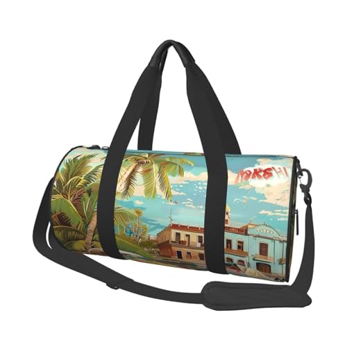 Island of Cuba Print Travel Duffel Bag Large Foldable Round Travel Carry on Bag with Adjustable Shoulder Strap for Weekender Overnight Flight Hospital Sports