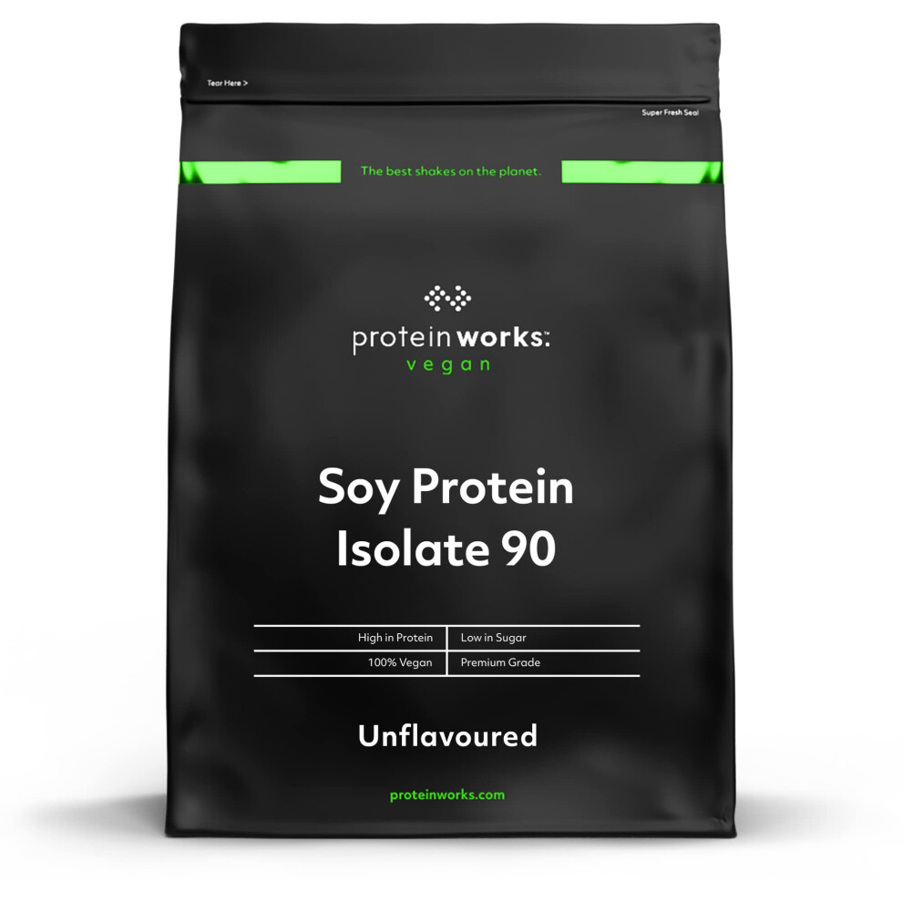 Soy Protein 90 (Isolate) Protein Powder | 100% Plant-Based | Low Fat | No Added Sugar | Gluten-Free | Unflavoured | 500 g