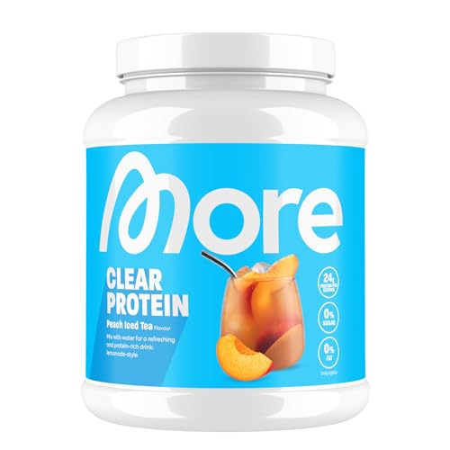 More Clear Protein, Peach Iced Tea, 600 g, 1.32 lbs, 20 Servings, Protein Drink with whey Isolate, Clear whey, Lactose Free, Made in Germany
