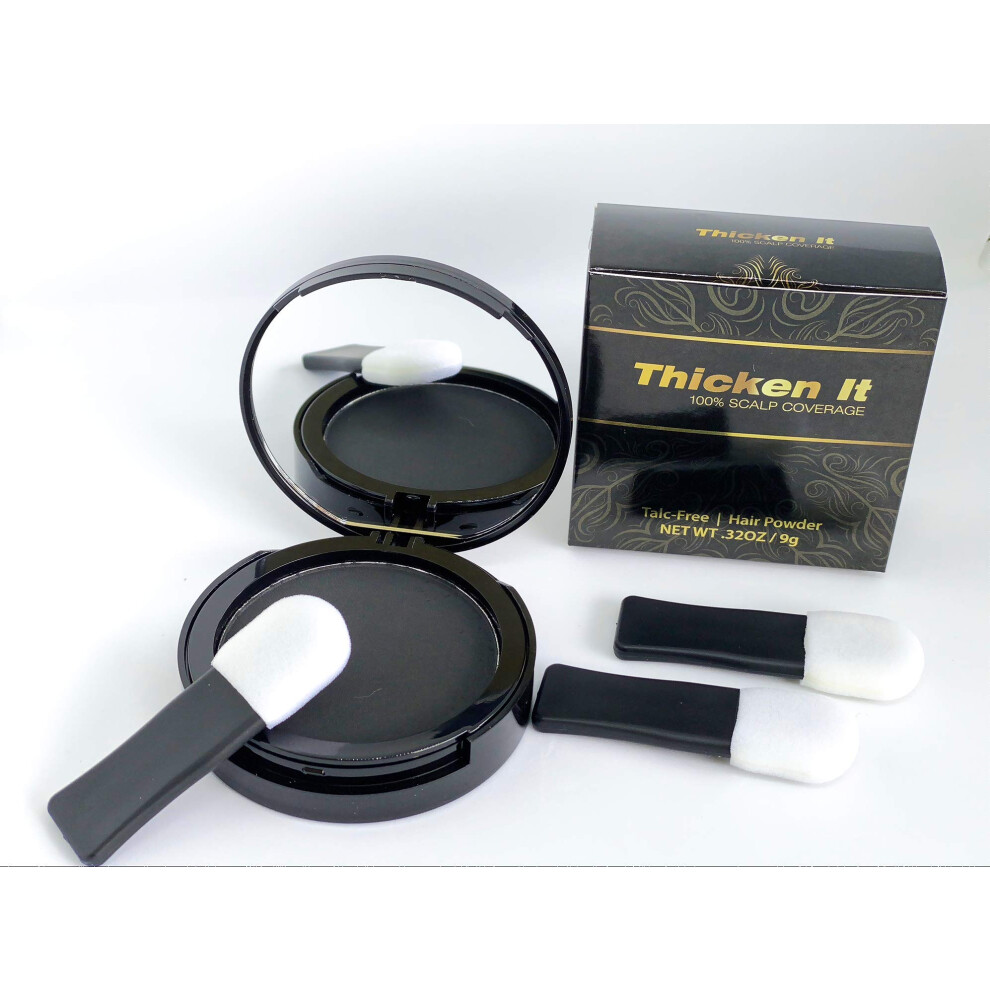 Thicken It 100% Scalp Coverage Hair Powder - BLACK - Talc-Free .32 oz. Water Resistant Hair Loss Concealer for men and women. Naturally Thicker T
