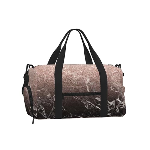 Modern Rose Gold Black Marble Pink Glitter, Sports Duffels, Handheld Crossbody Sports Luggage Bag, Large Capacity Travel Bag for Women and Men