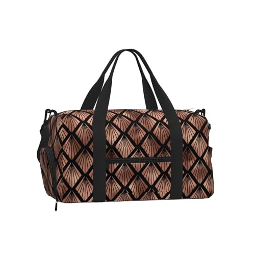 Rose Gold Art Deco Fans On Black, Sports Duffels, Handheld Crossbody Sports Luggage Bag, Large Capacity Travel Bag for Women and Men