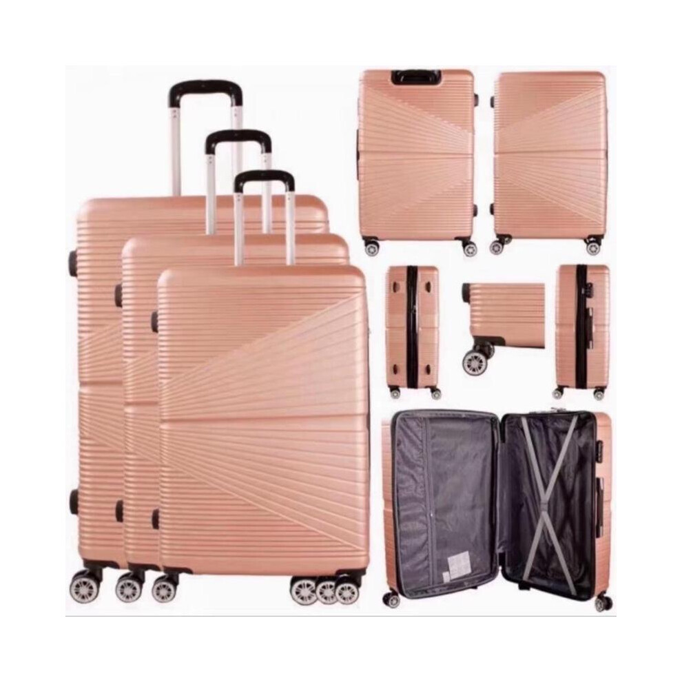 CMY Suitcase Set Hard Shell Suitcases Lightweight 3 Digit Combination Lock 4 Dual Spinner Wheels 3 Pcs suitcases & Travel Bags Luggage Sets Luggage with Telescopic Handle (Rose Gold, 3 Piece Set)
