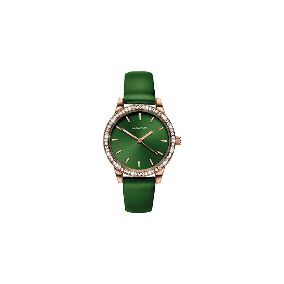 Sekonda Editions Ladies Analogue Quartz Watch with Rose Gold Case and Green Strap 40334 (note physical item it is darker than images)