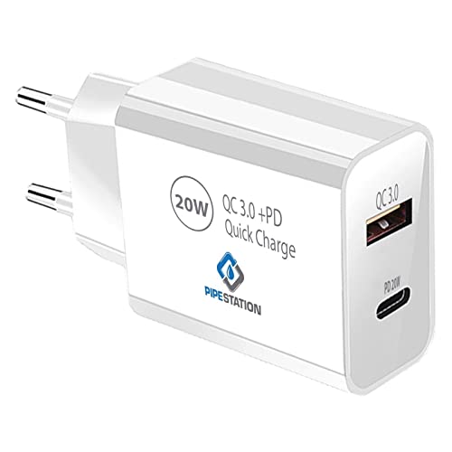 Pipestation 20W European USB Charger Plug with USB-C Fast Charger | European Portable Universal Travel Adapter for Spain, Italy, Greece, France, Europe | EU Plug to 2-Pin Euro Adaptor