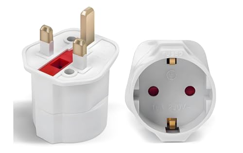 Pack of 2 Travel Adaptor | UK to European Plug Adapter Converter (Euro Type C, E, F) 3 Pin to 2 Pin Type G, EU Plugs for Europe Accessories,Italy,Cape Verde,Poland,Spain,Turkey,Greece,Bulgaria