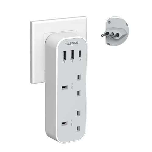 UK to Italy Plug Adapter, TESSAN Italian Travel Adaptor with 3 USB Ports (1 USB C), 2 Way Grounded Type L Adapter for Italy Chile Ethiopia Libya Syria Tunisia Uruguay