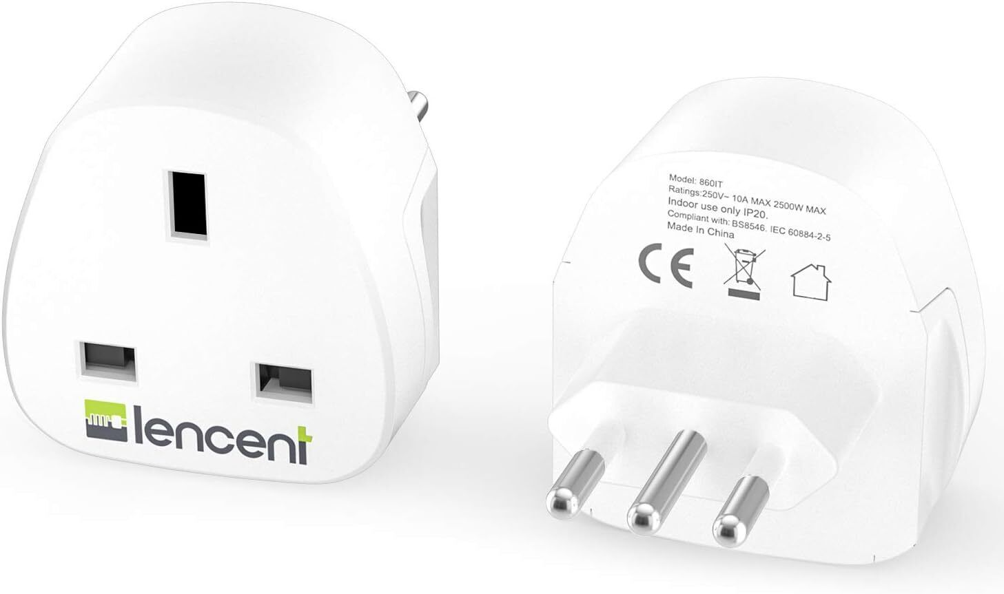 LENCENT UK to Italy Italian Plug Adapter,EU Euro Europe European Travel...