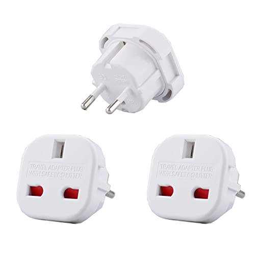 【3 Packs】Travel Adapter UK to European Plug Adapter, UK to Europe Converter Type C/E/F for Spain, France, Italy, Portugal, Poland, Greece, Netherlands, Turkey and more.