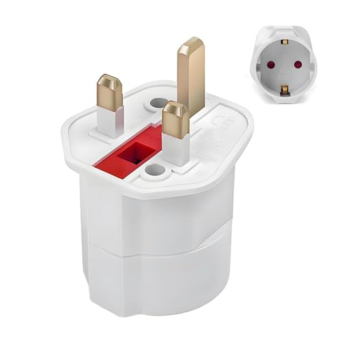 1Pack European to UK Plug Adaptor, Travel Adapter Eu to UK Plug Adapter with 13A Fuse 2 Pin to 3 Pin Plug Adapter for Converter from France, Italy,Spain,Germany to UK White