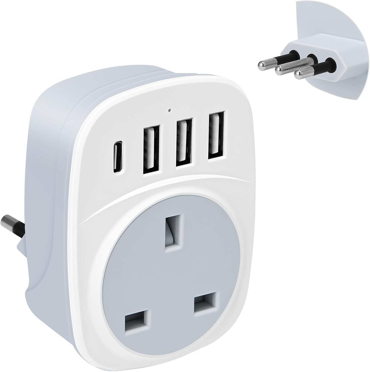 UK to Italy Plug Adapter, UK to Italy Travel Adapter with 4 USB(17W USB C Charge