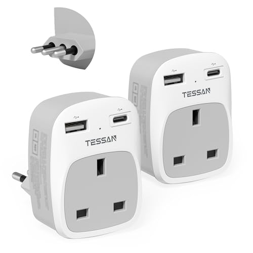 TESSAN UK to Italy Plug Adapter with 2 USB Ports for International Travel