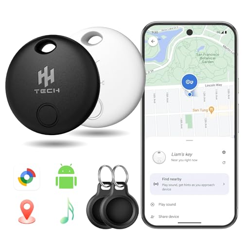 HH-Tech [Android Only] Smart Tracker Tag 2 Pack with 2 Cases Works with Google Find Hub, Smart Bluetooth Item Finder for Keys, Wallet, Suitcase & Bags (Black & White)