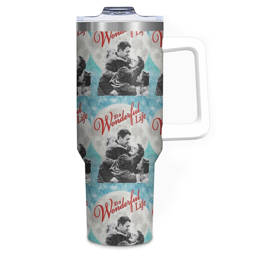 (Its A Wonderful Life Vintage Christmas Classic_3702) 40 oz Tumbler with Handle Stainless Steel Insulated Cup Leak Proof Travel Coffee Mug Keep Drinks