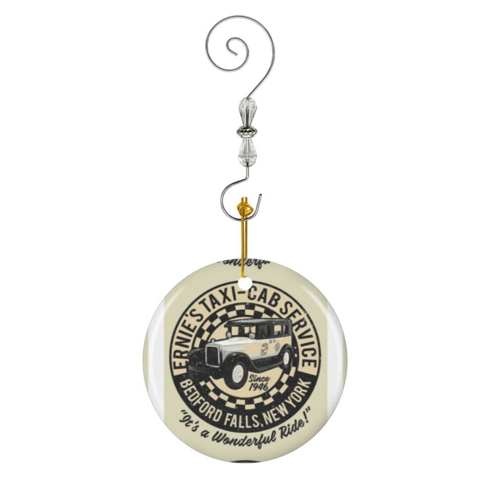 (Ernie's Taxi-Cab Service Its A Wonderful Life-3616) Christmas Ornaments Ceramic Charm with Hook Crystal Handmade Xmas Tree Decorations Keepsake Stoc