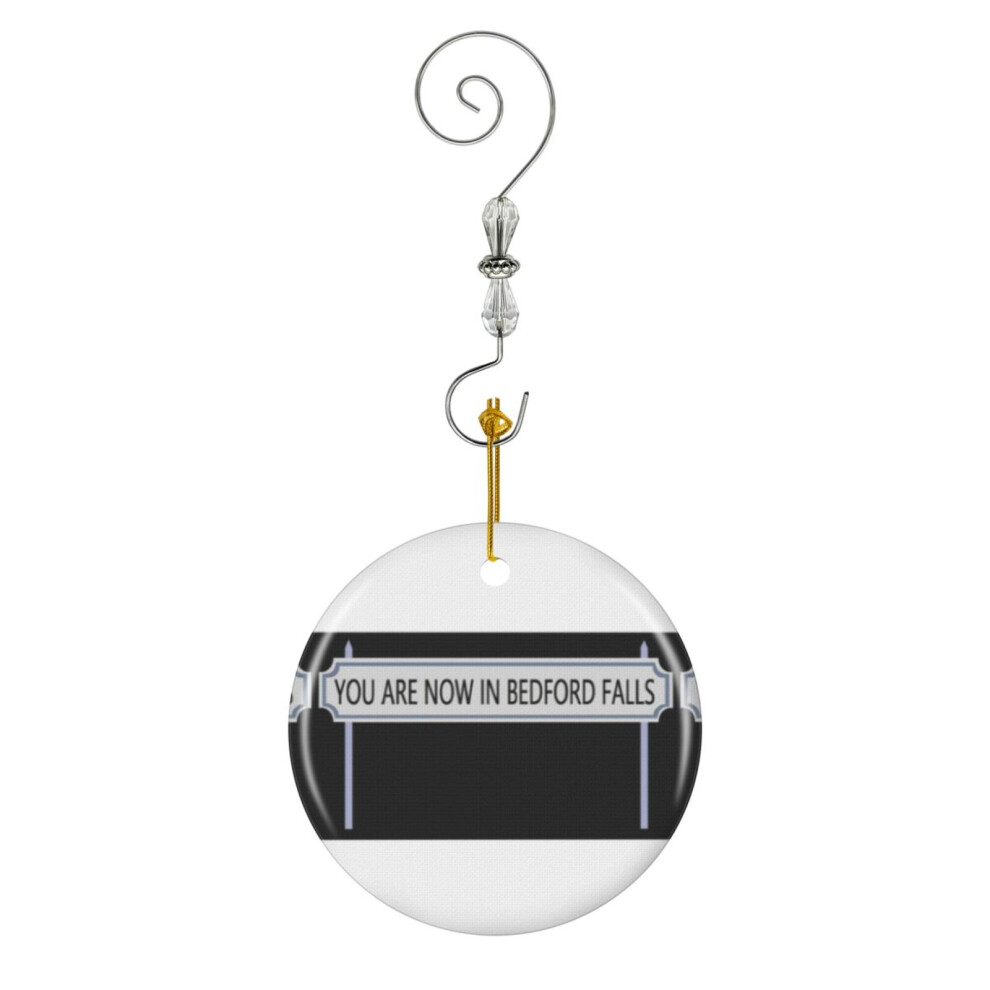 (Its A Wonderful Life Bedford Falls Sign-8797) Christmas Ornaments Ceramic Charm with Hook Crystal Handmade Xmas Tree Decorations Keepsake Stocking S