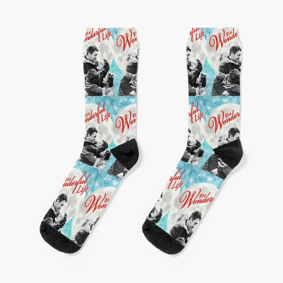 Dress Socks Its a Wonderful Life Vintage Christmas Classic Novelty Fancy Crazy Pattern Crew Casual for Men Women