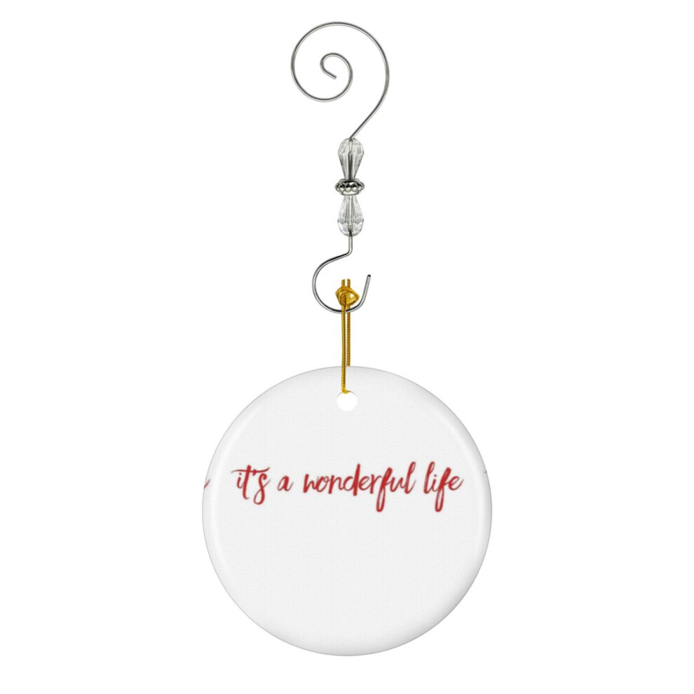 (Its A Wonderful Life-4089) Christmas Ornaments Ceramic Charm with Hook Crystal Handmade Xmas Tree Decorations Keepsake Stocking Stuffer