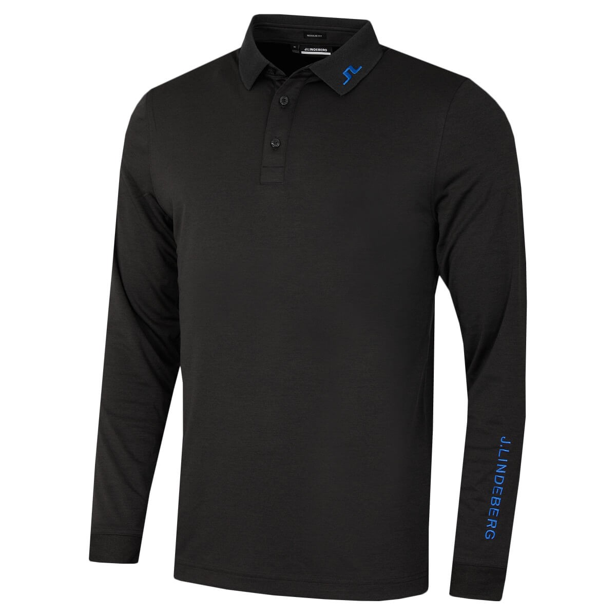 J.Lindeberg Mens Tour Tech Long Sleeve Polo Shirt - Black Melange - S