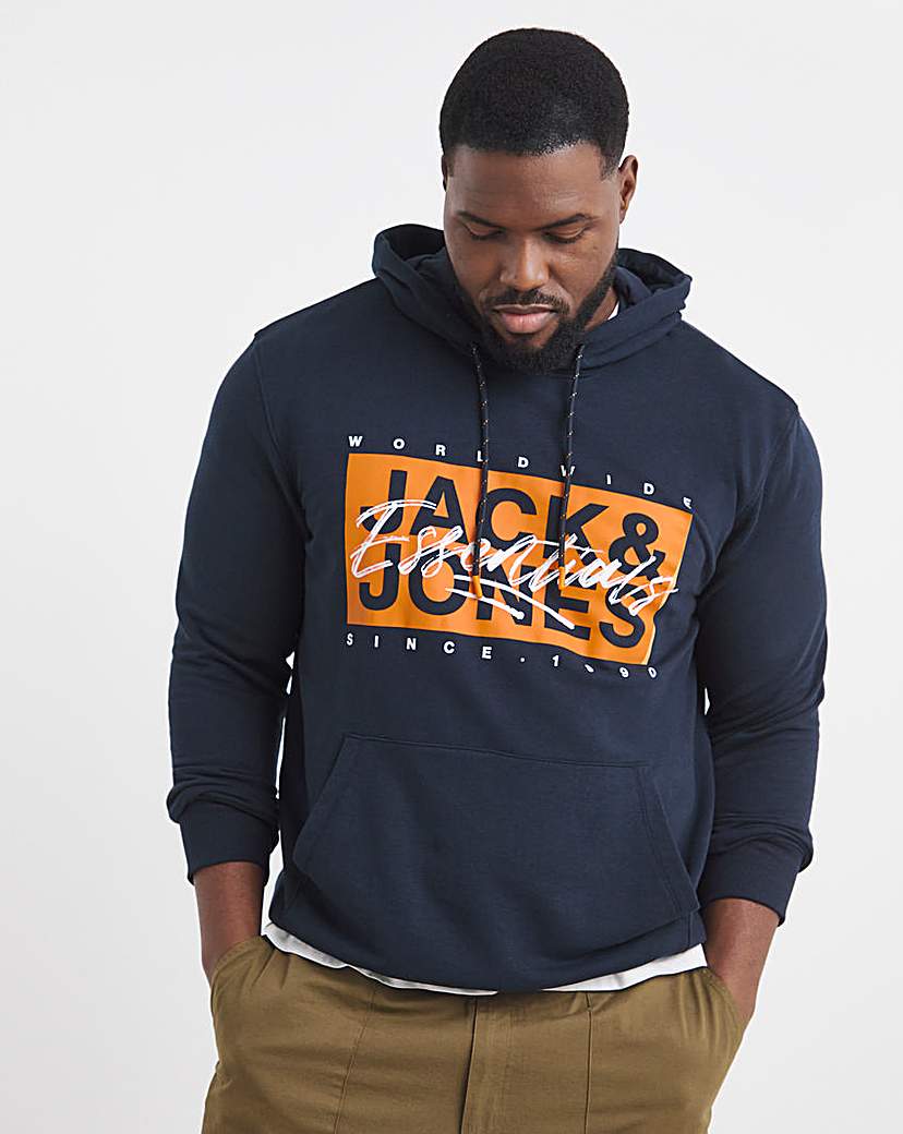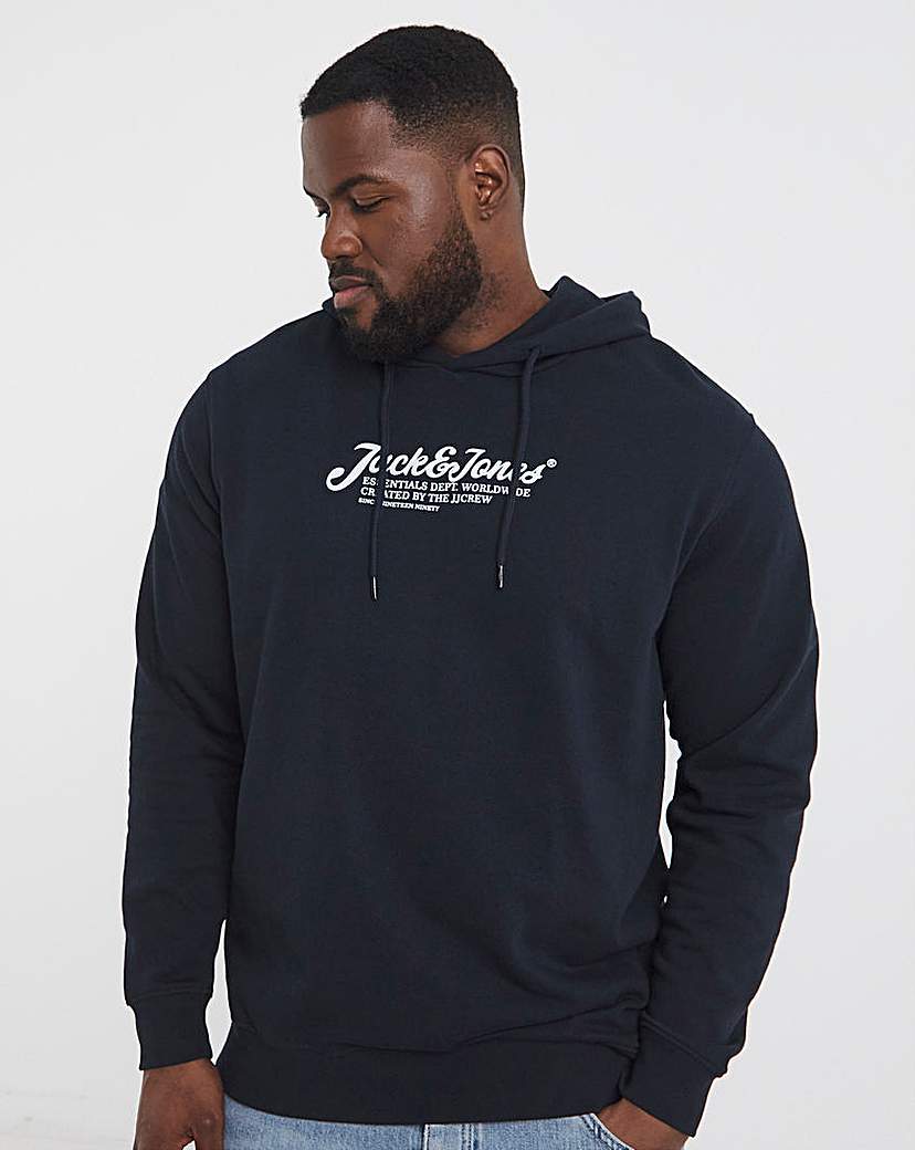 JACK & JONES Male Hoodie Plus Size Logo Hoodie, Navy blazer/print: large print, XXL