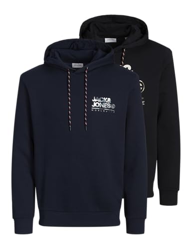 JACK & JONES Male Hoodie Pack of 2 Logo Hoodie, black/pack:w. navyblazer small, L
