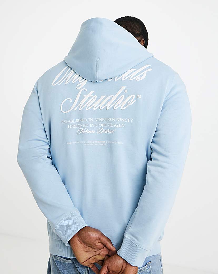 JACK & JONES Male Hoodie Printed Hoodie, Ocean Cavern, L