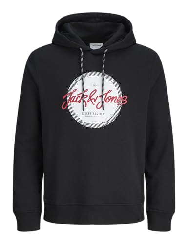 JACK & JONES Mens Hoodie with Kangaroo Pocket Hooded Pullover Long Sleeve Sweatshirt for Men UK, Black Colour, Size: S