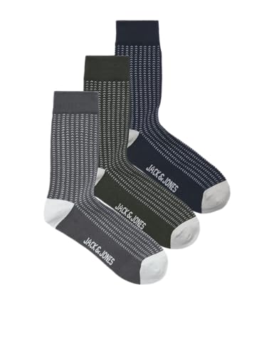 JACK & JONES Men's Jacdavid Socks 3 Pack Sn, Agave Green/Pack:Sky Captain-Asphalt, One Size