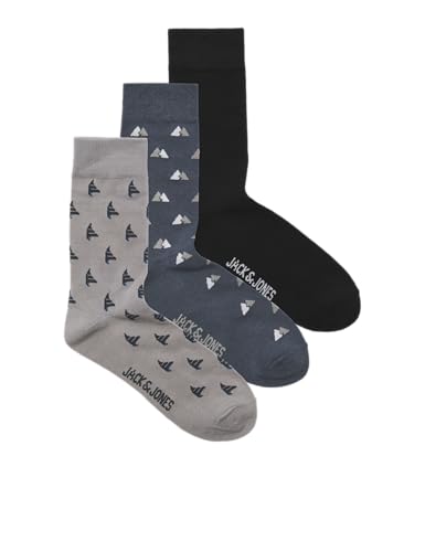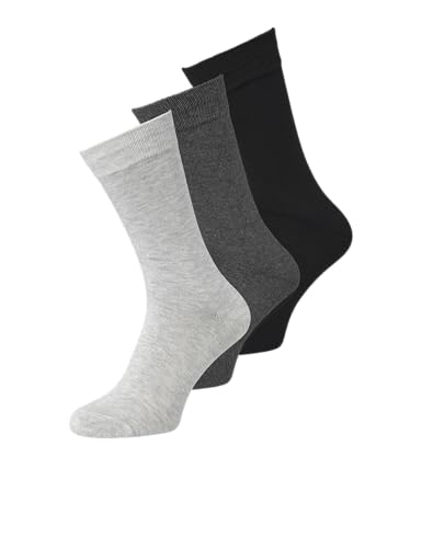JACK & JONES Men's Jacrafael Socks 3 Pack Noos (Pack of 3), Black/Pack:Dark Grey Melange - Light Grey Melange, One Size