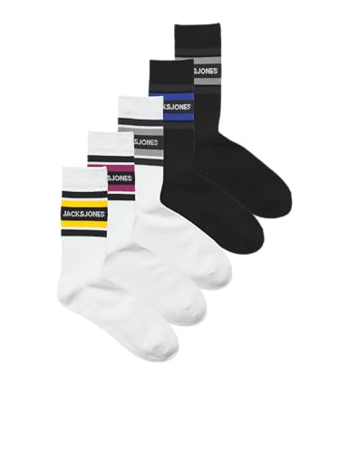 JACK & JONES Men's Jacbora Tennis Socks 5 Pack, White/Pack: Grey Mist-White-Black-Canyon Sunset, One Size