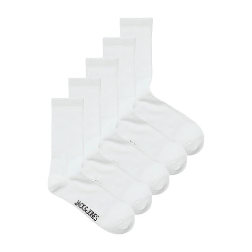 JACK & JONES Men's Jacstatement Tennis Socks 5 Pack, White/Pack: White, White, White, One Size