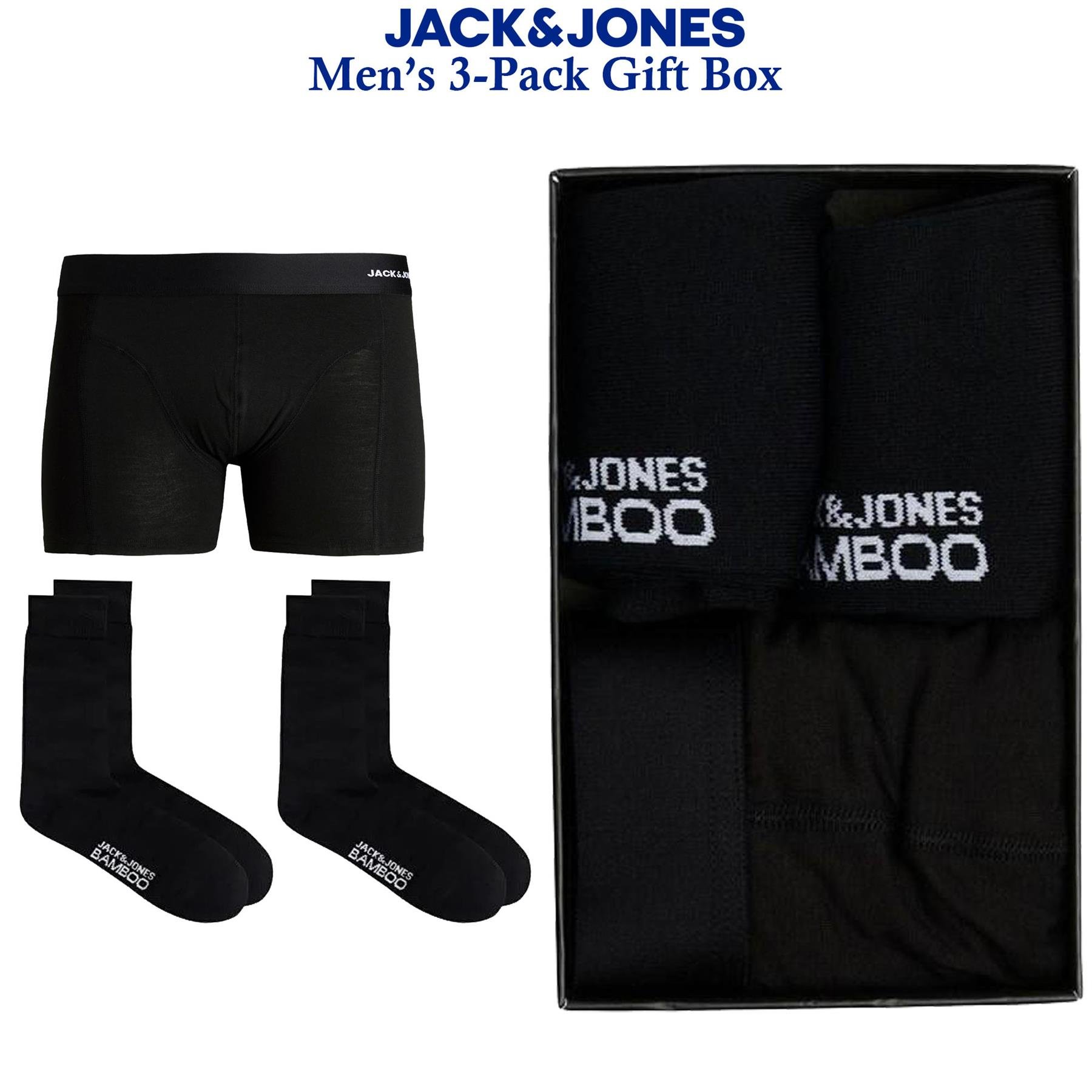3 Pack Gift Box Jack and Jones Mens Rich Cotton Stretch Underwear & Socks Set