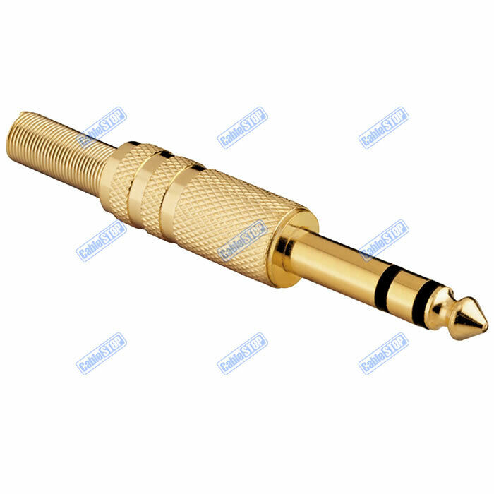 GOLD 6.35mm STEREO 1/4" Male Jack Plug Cable CONNECTOR Solder Spring Adapter