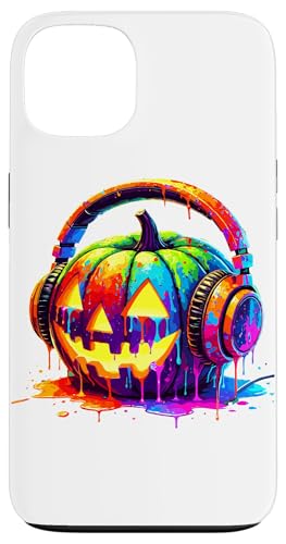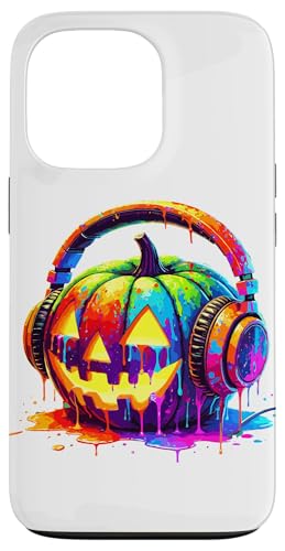 Splash Art Pumpkin Halloween Jack-o'-Lantern Headphones Case for iPhone 13 Pro