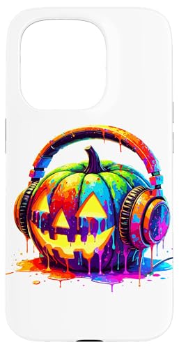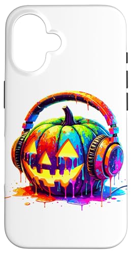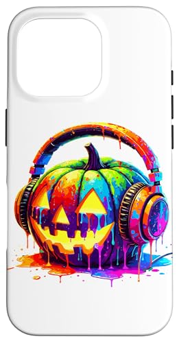 Splash Art Pumpkin Halloween Jack-o'-Lantern Headphones Case for iPhone 16 Pro