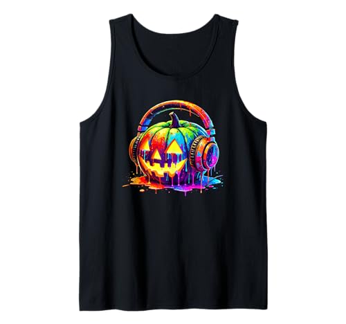 Splash Art Pumpkin Halloween Jack-o'-Lantern Headphones Tank Top