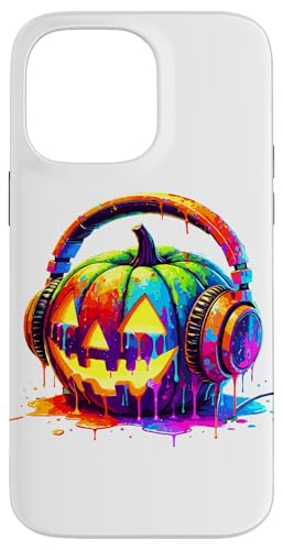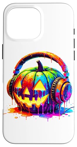 Splash Art Pumpkin Halloween Jack-o'-Lantern Headphones Case for iPhone 16 Pro Max