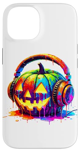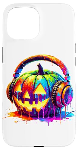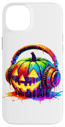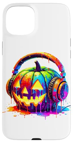 Splash Art Pumpkin Halloween Jack-o'-Lantern Headphones Case for iPhone 15 Plus