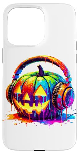 Splash Art Pumpkin Halloween Jack-o'-Lantern Headphones Case for iPhone 15 Pro Max