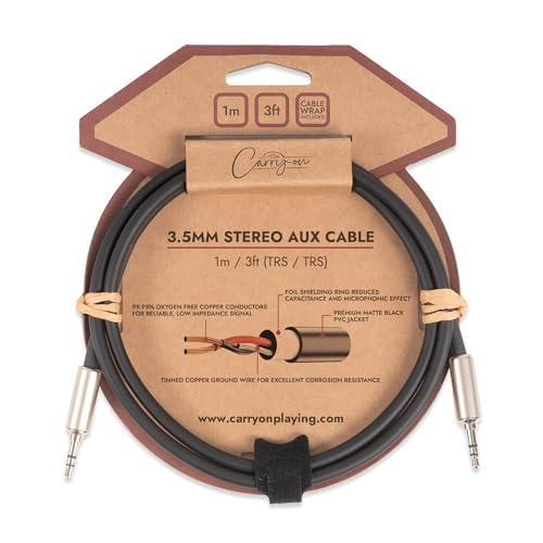 Carry-on AUX Cable 3.5mm Audio Aux Cable, Cable Wrap Included, 1m matte black Stereo Jack for Headphones, iPad, iPhone, MAC. PC, Car, Speaker, TV