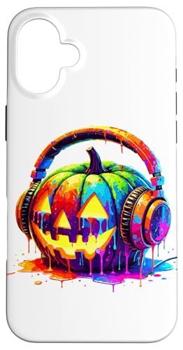 Splash Art Pumpkin Halloween Jack-o'-Lantern Headphones Case for iPhone 16 Plus