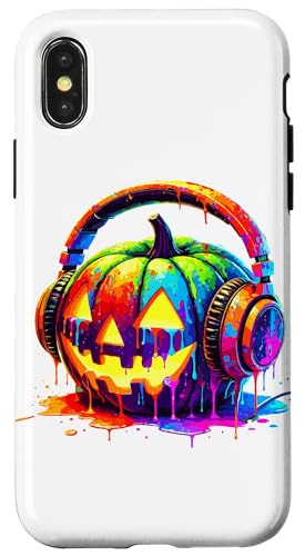 Splash Art Pumpkin Halloween Jack-o'-Lantern Headphones Case for iPhone X/XS