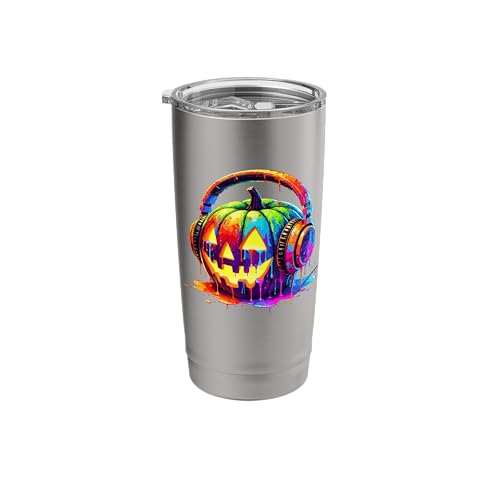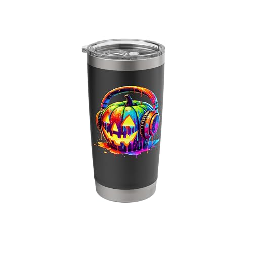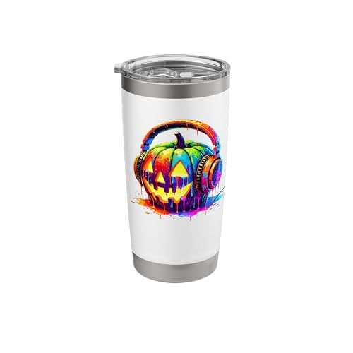 Splash Art Pumpkin Halloween Jack-o'-Lantern Headphones Stainless Steel Insulated Tumbler